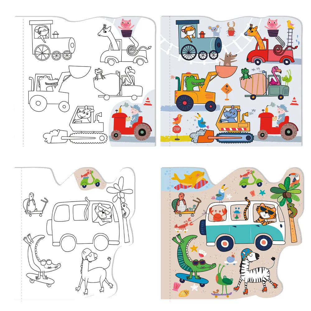 A lapozható színező könyvben logikai fejtörők és újra használható matricák is találhatók, így izgalmas játék vár rád akár utazás közben is!