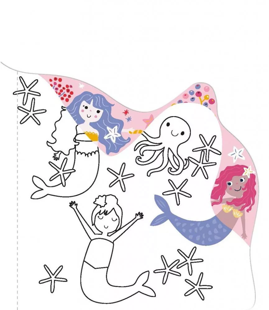 Színezd ki a fehér képeket a vizes ecset segítségével, mely a könyv spirálfűzéses oldalában található. A játékhoz nem kell festéket használnod! A kép amikor megszárad, visszafehéredik így újra és újra kiszínezheted a "varázstolladdal".