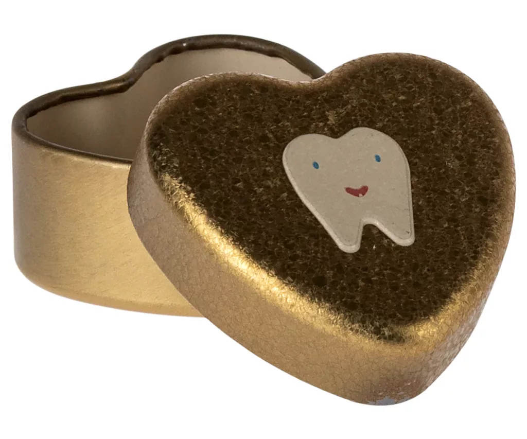 A legaranyosabb dobozka, ahol az első tejfog helyet kaphat. Ez a tejfogtartó doboz dombornyomott fémből készült, ami garantálja, hogy hosszú évekig megőrizhetitek ezt az emléket.