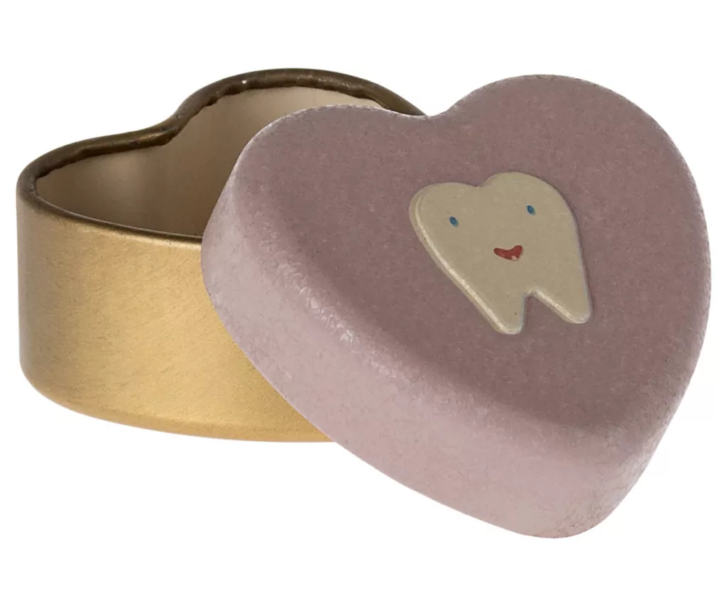 A legaranyosabb dobozka, ahol az első tejfog helyet kaphat. Ez a tejfogtartó doboz dombornyomott fémből készült, ami garantálja, hogy hosszú évekig megőrizhetitek ezt az emléket.