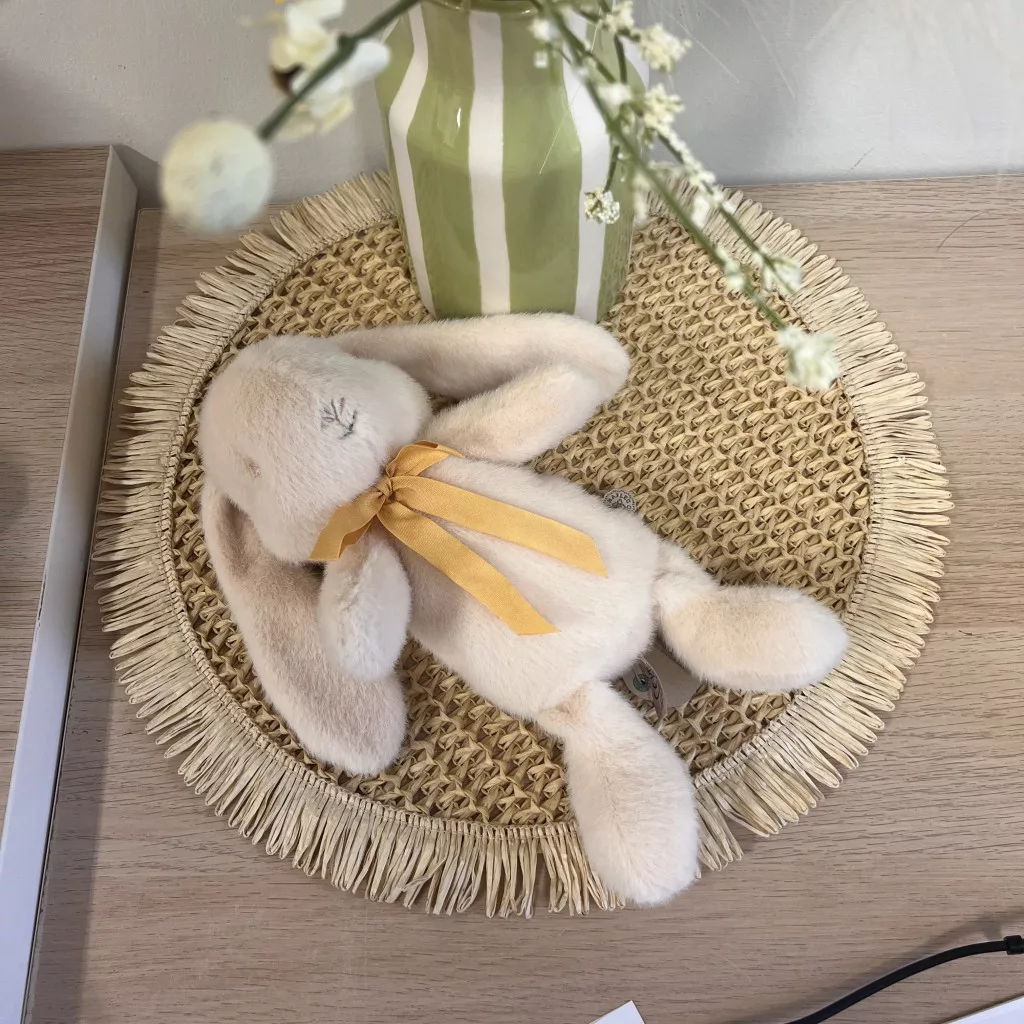 • Formatervezett ülő pozíció: Stabil testtartásának köszönhetően a nyuszi könnyen elhelyezhető a kiságyban, polcon vagy díszként a gyerekszobában.