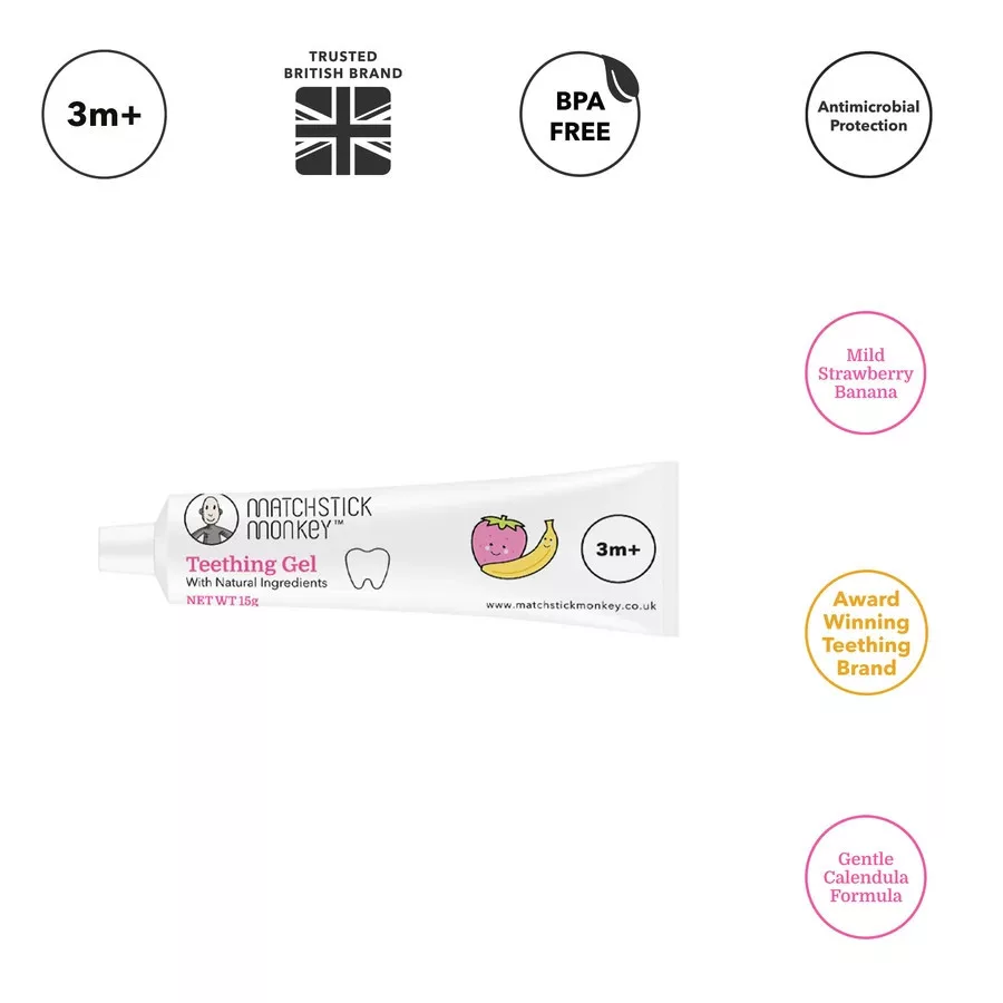 A Matchstick Monkey fogzást segítő zselé biztonságos már 3 hónapos kortól. Nem tartalmaz mesterséges színezékeket, BPA-t, állati eredetű összetevőket, és természetesen állatkísérlet-mentes. Napi akár négyszer is alkalmazható, nappali és éjszakai használatra egyaránt alkalmas, mindig felnőtt felügyelete mellett.
