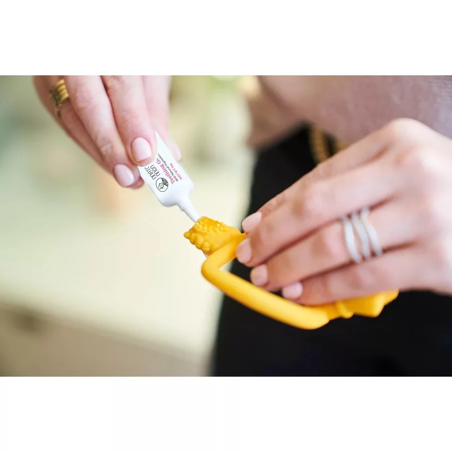 A Matchstick Monkey Rágómaki tökéletes kiegészítője a zselének. A maki puha, dudoros feje segít a zselét pontosan a megfelelő helyre juttatni, miközben finoman masszírozza a fogínyt – így a fájdalmas nyomás és a feszülő érzés gyorsabban enyhülhet.
