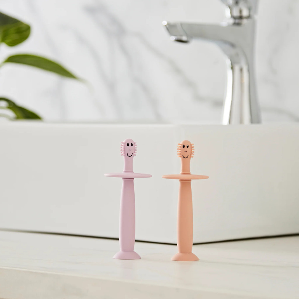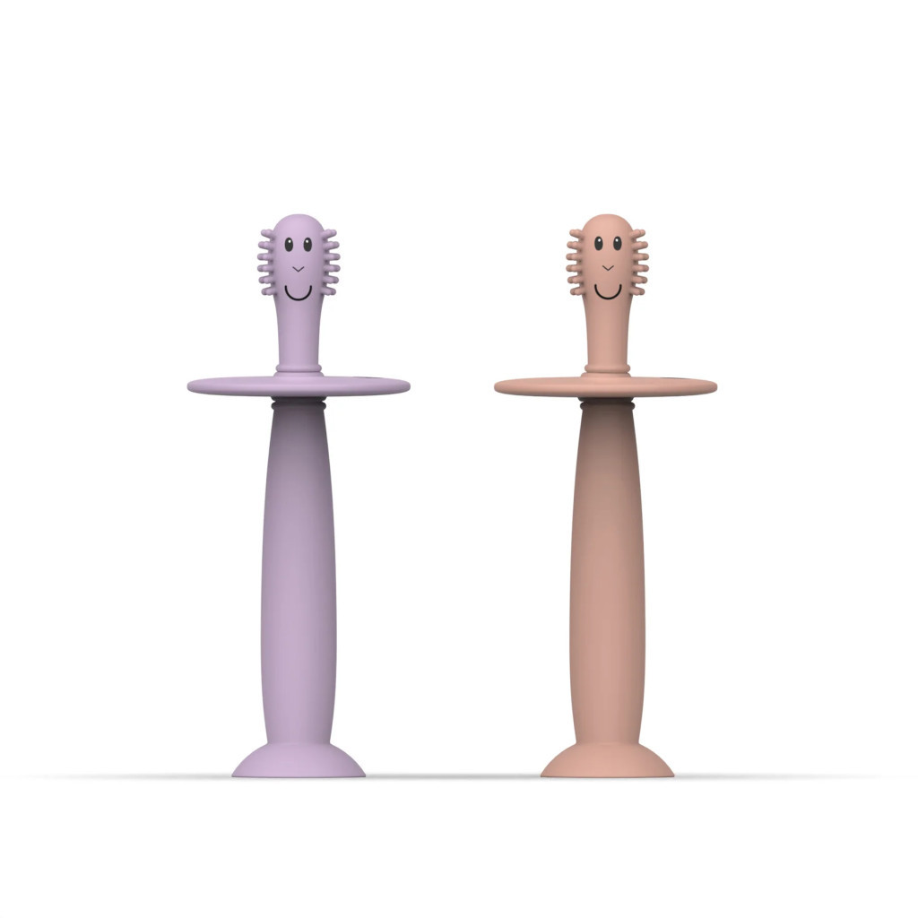 Matchstick Monkey tanuló baba fogkefe - Púderrózsaszín és pasztell lila