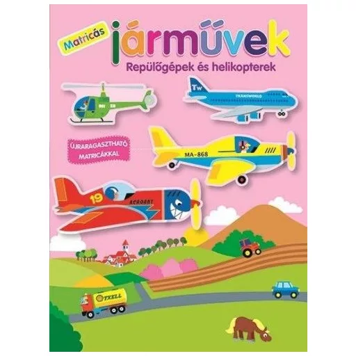 A sorozat négy kötetében a hátterek és a visszahúzható, újra felhasználható matricák segítségével a gyerekek több képet is alkothatnak a repülőgépek, a teherautók, a traktorok vagy a versenyautók világáról.