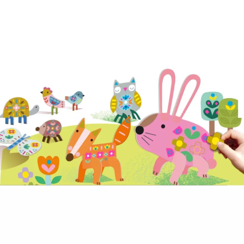 Az Avenir Matricázó és 3D modell készítő készlet aranyosan illusztrált, állatos perforált lapokat és újrafelhasználható matricákat tartalmaz, hogy a gyerekek elkészíthessék saját figuráikat és eljátszhassák velük kedvenc állatos jeleneteiket! Tartalma: állatfigurák elkészítéséhez szükséges alaplapok, 130+ normál matrica és 70+ fluoreszkáló matrica.