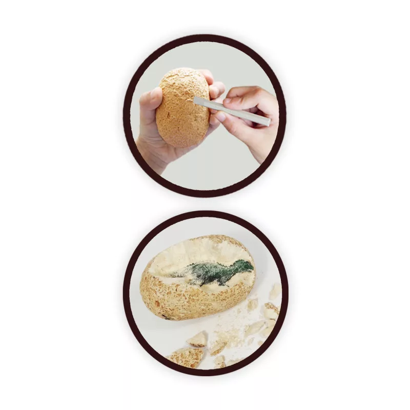 Tartalma: 12 tojás, 3 véső, 2 ecset, 1 tálca a dinók kiásásához, 1 poszter