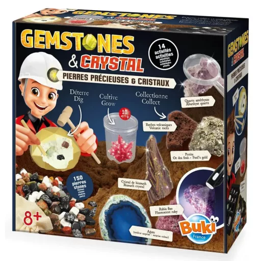 Növessz óriási kristályokat és instant kristályokat. Figyeld meg a különféle kőzeteket: vulkáni kövek, kvarc, bolondok aranya, fluoreszkáló kőzet, csiszolt achát, bizmutkristály, stb.