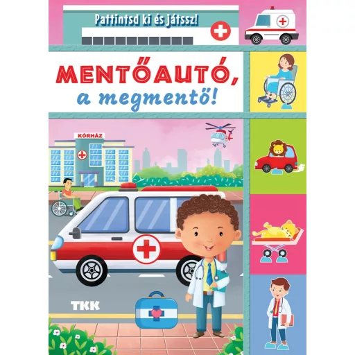 A mentőautó napi hőstettéről szóló rövid mese, a páratlan oldalakon kivehető, szétszedhető és újból összerakható játékokkal.