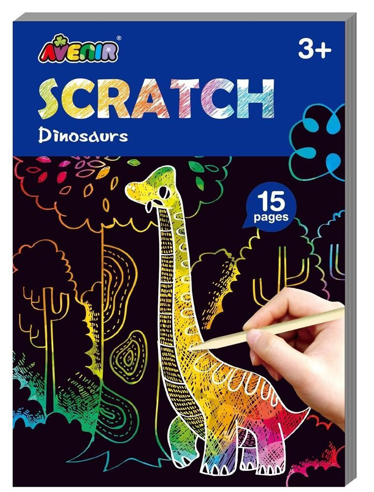 15 szórakoztató karckép várja, hogy felfedezd és kiszínezd a dinoszauruszok világát! A speciális szerszám segítségével könnyedén elővarázsolhatad a színeket, ha megkarcolod a fekete papírok felületét.