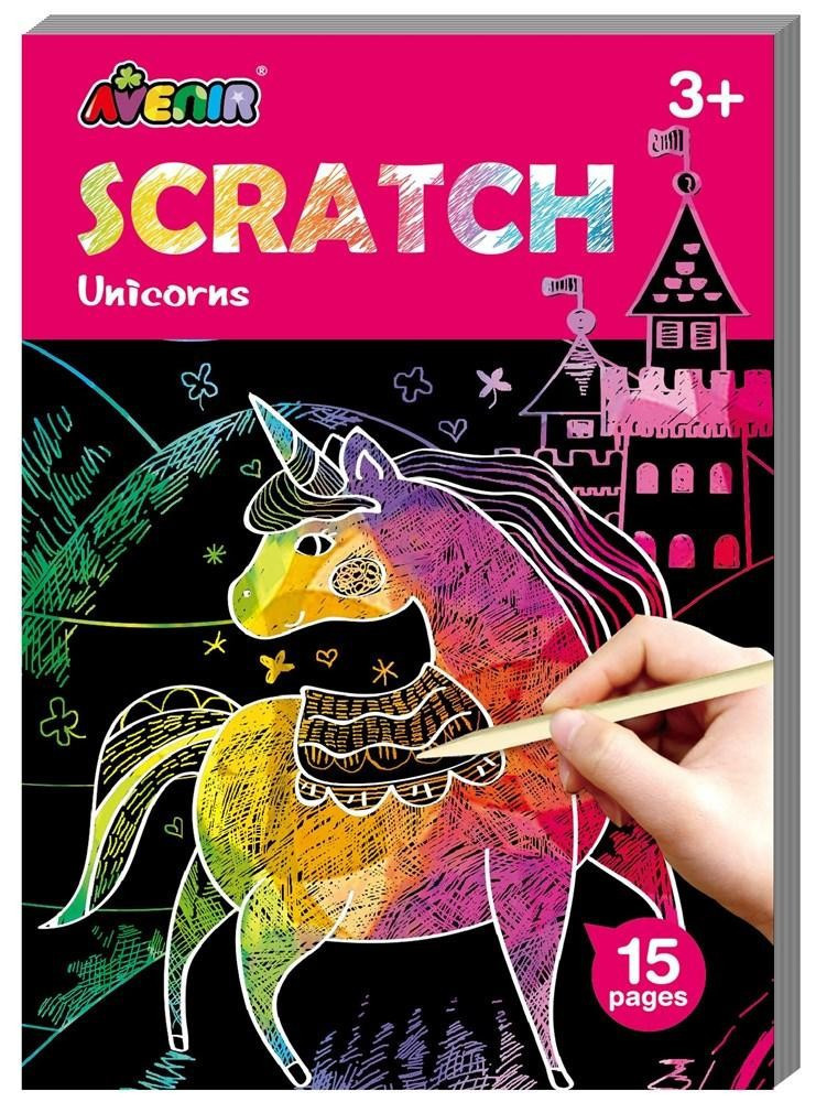 15 szórakoztató karckép várja, hogy felfedezd és kiszínezd az unikornisok világát! A speciális szerszám segítségével könnyedén elővarázsolhatad a színeket, ha megkarcolod a fekete papírok felületét.
