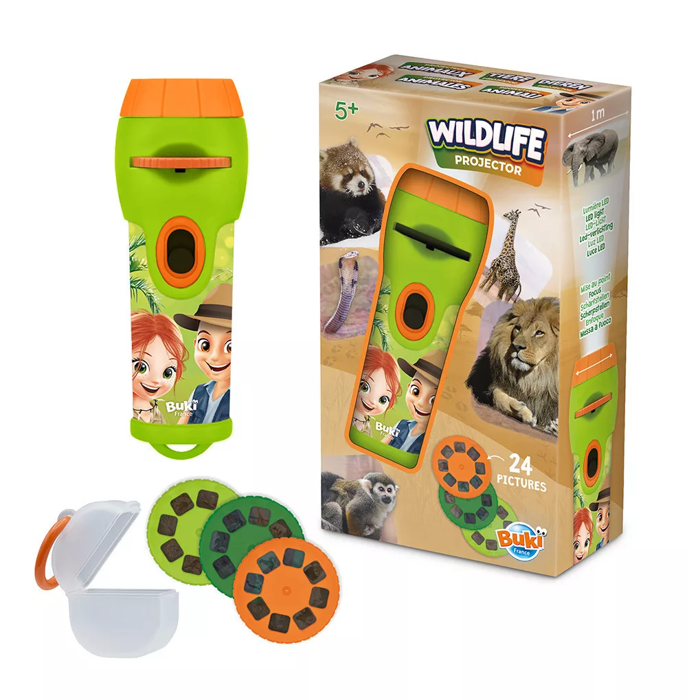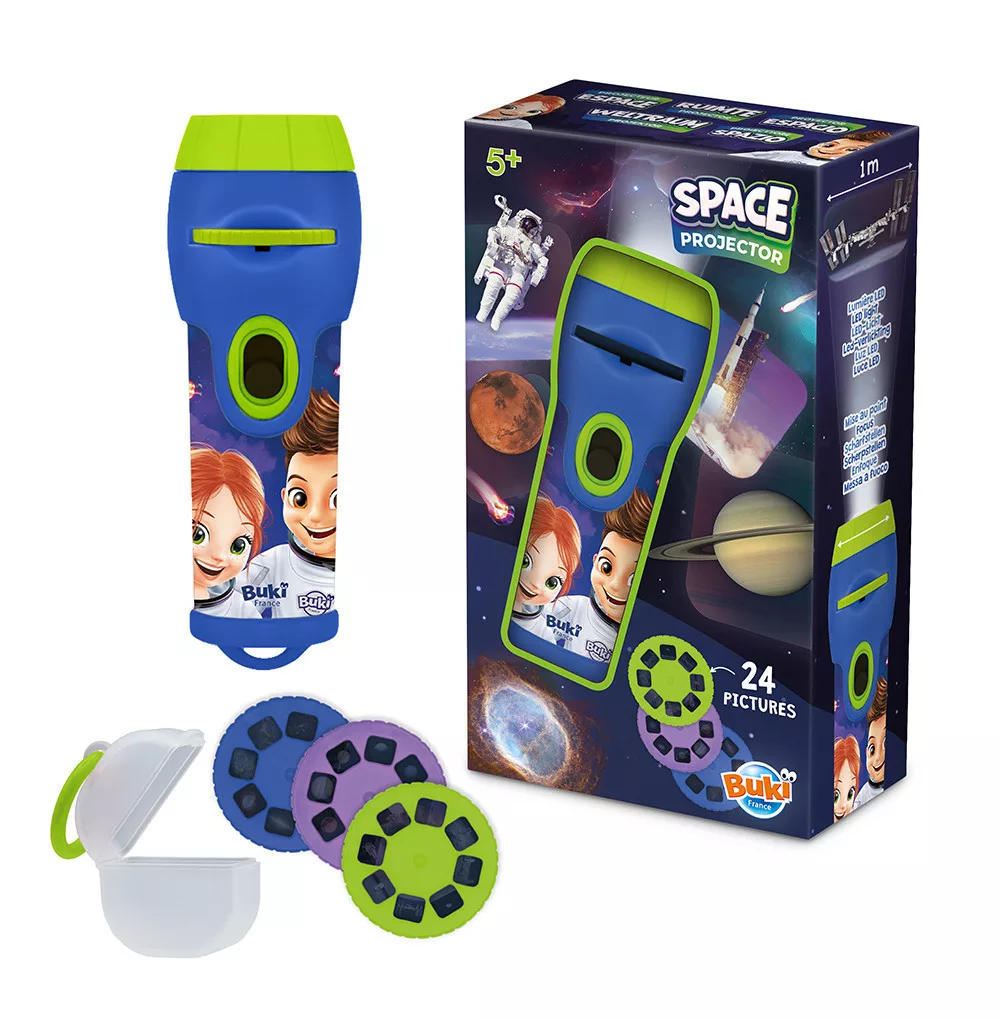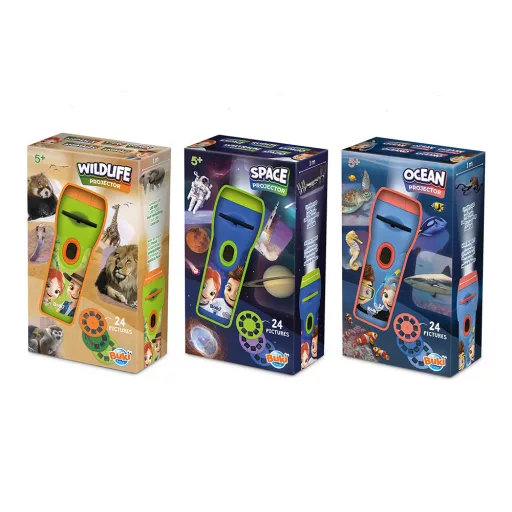 Mini projektorok a Buki márkától 3 féle témakörben! A projektorokkal gyönyörű képeket vetíthetsz a falra vagy a mennyezetre. Minden projektor 3 lemezt tartalmaz, melyeken 8 dia található. A projektorok kimondottan a kis kezekhez lettek kialakítva, így kényelmes fogást biztosítanak, használatuk pedig rendkívül egyszerű. 1 méteres vetítési távolság.