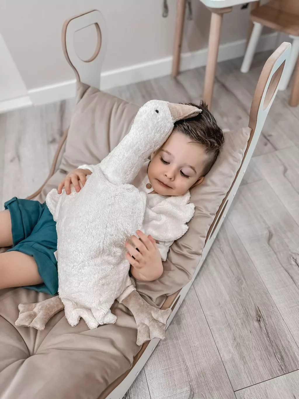 A párna formája a Tupti.wood Montessori XXL hintához igazodik, így pontos illeszkedést biztosít, nem mozdul el használat közben, nem gyűrődik, nem csúszik – így a gyermek biztonságban és nyugalomban pihenhet rajta.