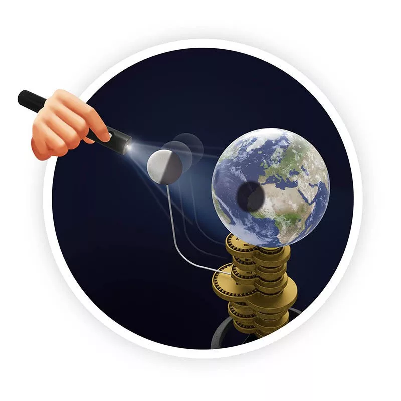 Konvertáld át a modellt a Föld és a Hold megjelenítésére, és a fogyatkozásokat reprodukálhatod a lámpával (mellékelve).
