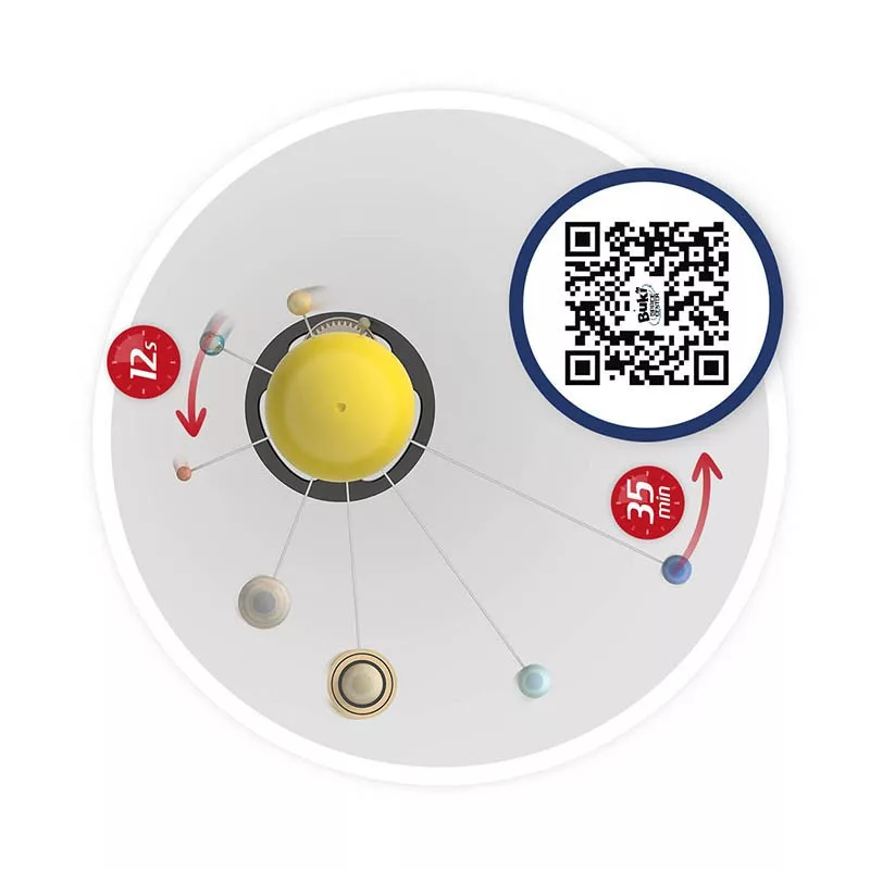 Fedezd fel a Naprendszert és annak 8 bolygóját, amelyek a valós pálya-ciklusok szerint forognak 35 percig. A Nap a központban úgy világít, mint egy éjszakai fény.