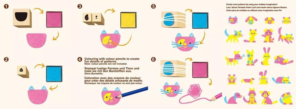 Te is szeretsz nyomdázni? Az Avenir különleges nyomdakészletével szabadjára engedhetetd fantáziádat! A játék 14 nyomda formát, 3 különböző színű festéket, 3 nyomdázható képet és 1 fonalat tartalmaz. A különböző formák egymásra nyomdázásából alakíthatod ki a szebbnél-szebb állatokat, így különböző színű és formájú mintázatokat hozhatsz létre.