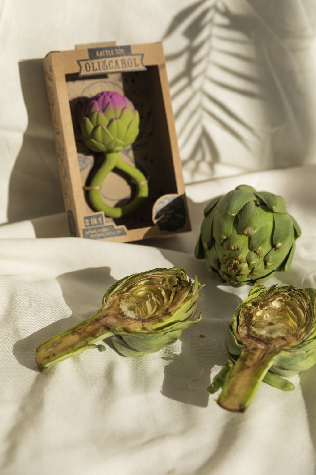 Oli & Carol természetes csörgő rágóka - Articsóka