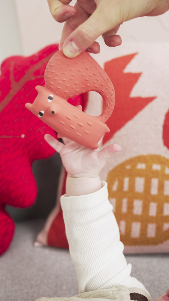 Cyril az egyik legkülönlegesebb és legikonikusabb figura Donna Wilson világhírű kollekciójából. Ez az egyedi rágóka 100% természetes Hevea gumiból készült, és egyszerre fogzást segítő játék, fürdőjáték és érzékszervi fejlesztő eszköz. Hosszú, farok alakú fogantyúja tökéletesen illeszkedik a babák kis kezeihez, így könnyedén megfogható és rágható.