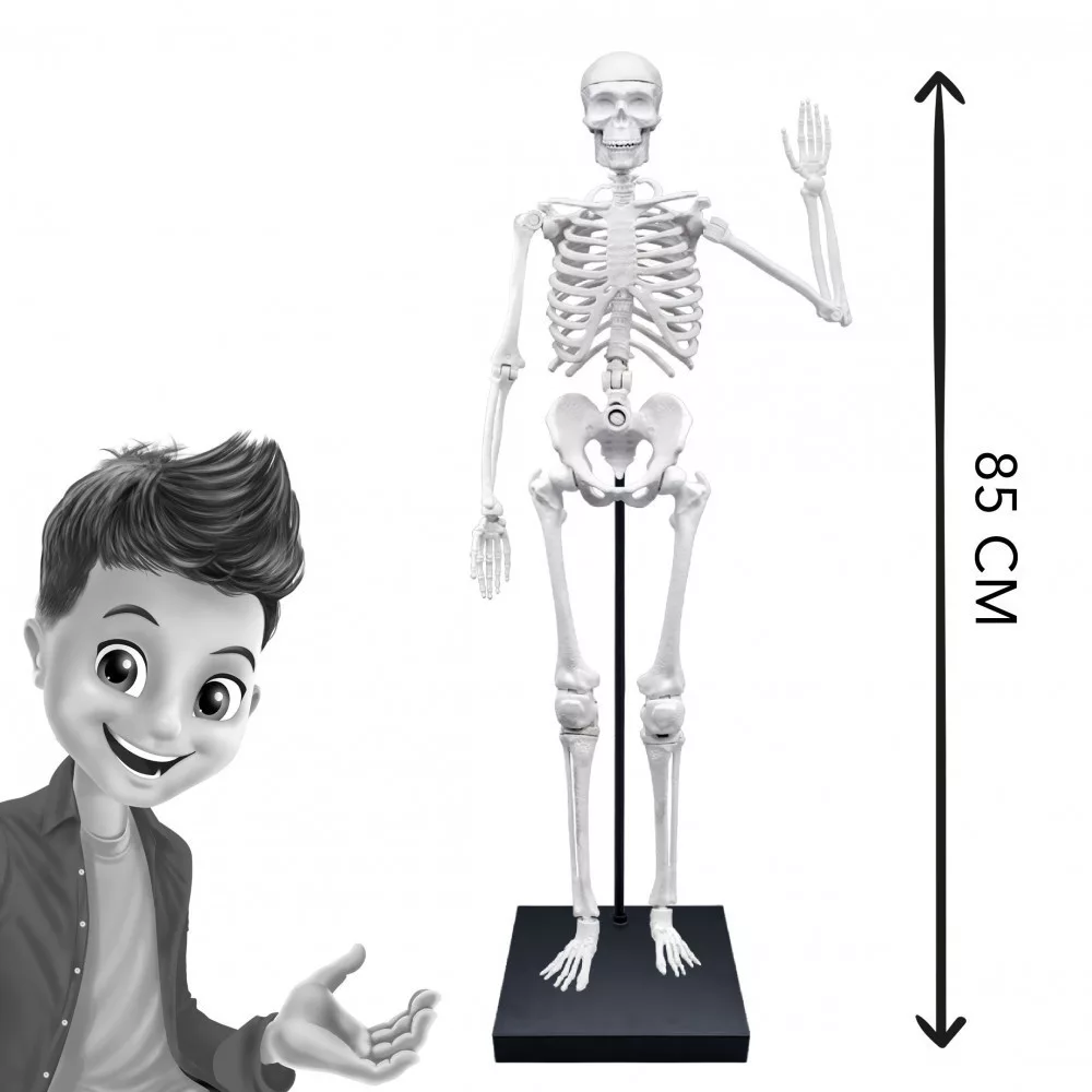 mozgatható, így kedved szerint bármilyen pózba beállíthatod. Alaphelyzetben állványra szerelhető, melyet a csomagolás tartalmaz. A csontvázat felcímkézheted, hogy azonosítani tudd az egyes csontokat.