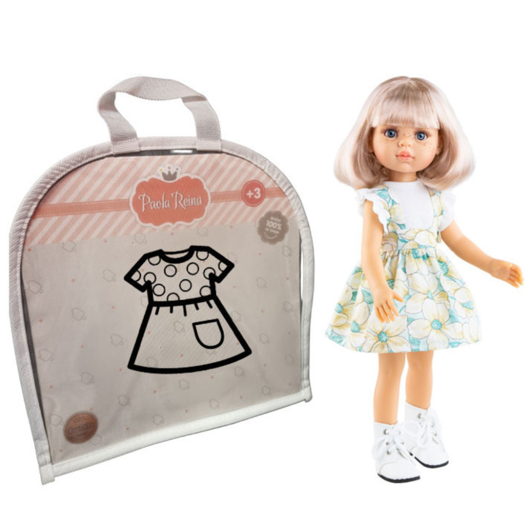 A Paola Reina 32 cm-es játékbaba nyári szellő ruhája igazi frissességet hoz a játékbaba gardróbjába. A világos alapon elhelyezkedő, nagy virágmintás szoknya játékosan lengedez, mint egy szellő a nyári réten. A ruha tökéletes választás mindazoknak, akik szeretnék, ha a játékbaba mindig csinos és különleges lenne.
