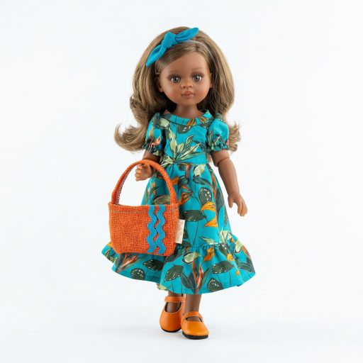 Amikor kinyitod az elegáns díszdobozt azonnal megcsap a kellemes karamell illat amely a Paola Reina babák egyik legkedveltebb ismertetőjegye. A selymes tapintású vinil és a sűrű fésülhető haj valódi prémium élményt nyújt a kis kezeknek. A trópusi mintás ruha és a narancssárga kiegészítők harmonikus egységet alkotnak. Ez a baba remekül passzol a kínálatunkban található kézműves babaágyneműkhöz és kiságyakhoz így a fektetés is igazi rituálé lehet.