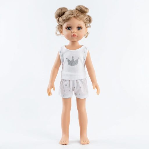 A Paola Reina Valeria baba 32 cm igazi álombarát a gyerekszobában. Két kis kontya és álmodozó tekintete azonnal magával ragadja a kicsiket, miközben a spanyol kézműves minőség minden részletében tetten érhető – a haj textúrájától kezdve a prémium, vanília illatú vinil testig.