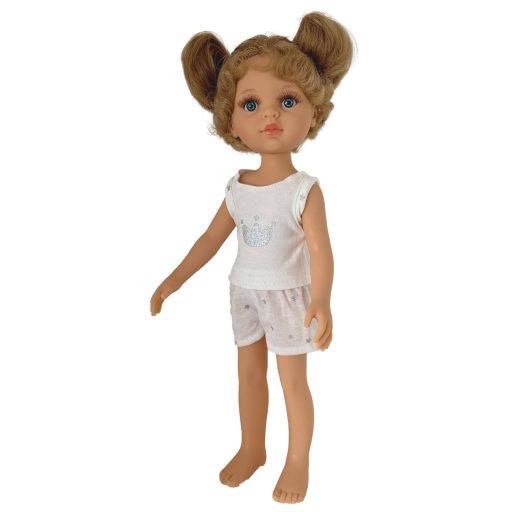 A Paola Reina Xenia baba megjelenésében és tapintásában is a legmagasabb színvonalat képviseli. Tökéletes méretű, hogy a kis kezek is kényelmesen ölelhessék, öltöztethessék vagy altathassák. Az öltözet modern és játékos – pont olyan, amit egy mai kis hercegnő szívesen viselne az esti mese alatt.