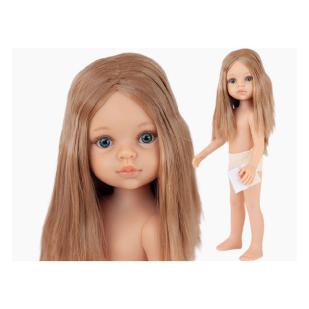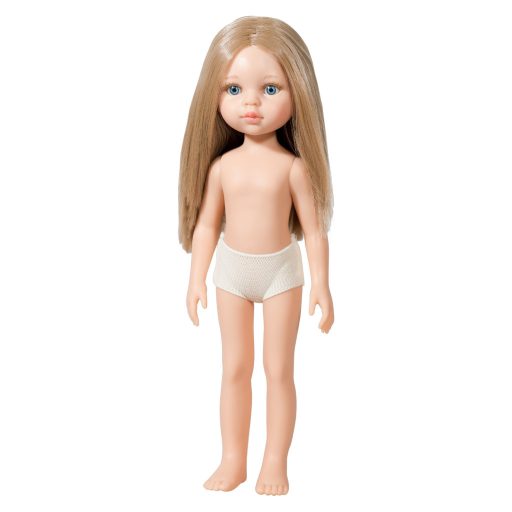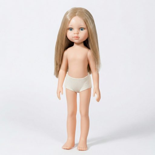 A Paola Reina Carla baba 32 cm ruha nélkül is megmutatja természetes, klasszikus szépségét. Hosszú, világos haját szabadon viseli, karcsú testalkata pedig segíti a babaöltöztetés kreatív élményét. Alsója egyszerű, tiszta fehér, így könnyedén végigjátszható az öltözködés minden lépése.