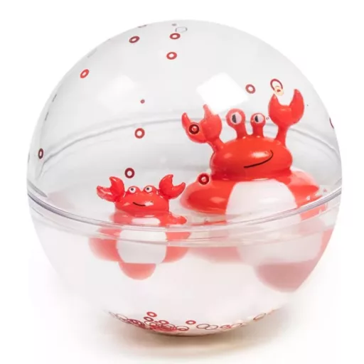 A Petit Boum Happy Bubble Rákok egy különleges, vízben lebegő szenzoros labda, amely vidám tengeri hangulatot varázsol a fürdőkádba. A buborékos golyó belsejében két kedves piros rák úszkál apró szemcsék között, miközben finoman mozognak a víz hatására. Ez a bájos játék nemcsak a fürdőzés élményét teszi még szórakoztatóbbá, hanem a baba érzékszervi fejlődését is támogatja – természetes, megnyugtató módon.