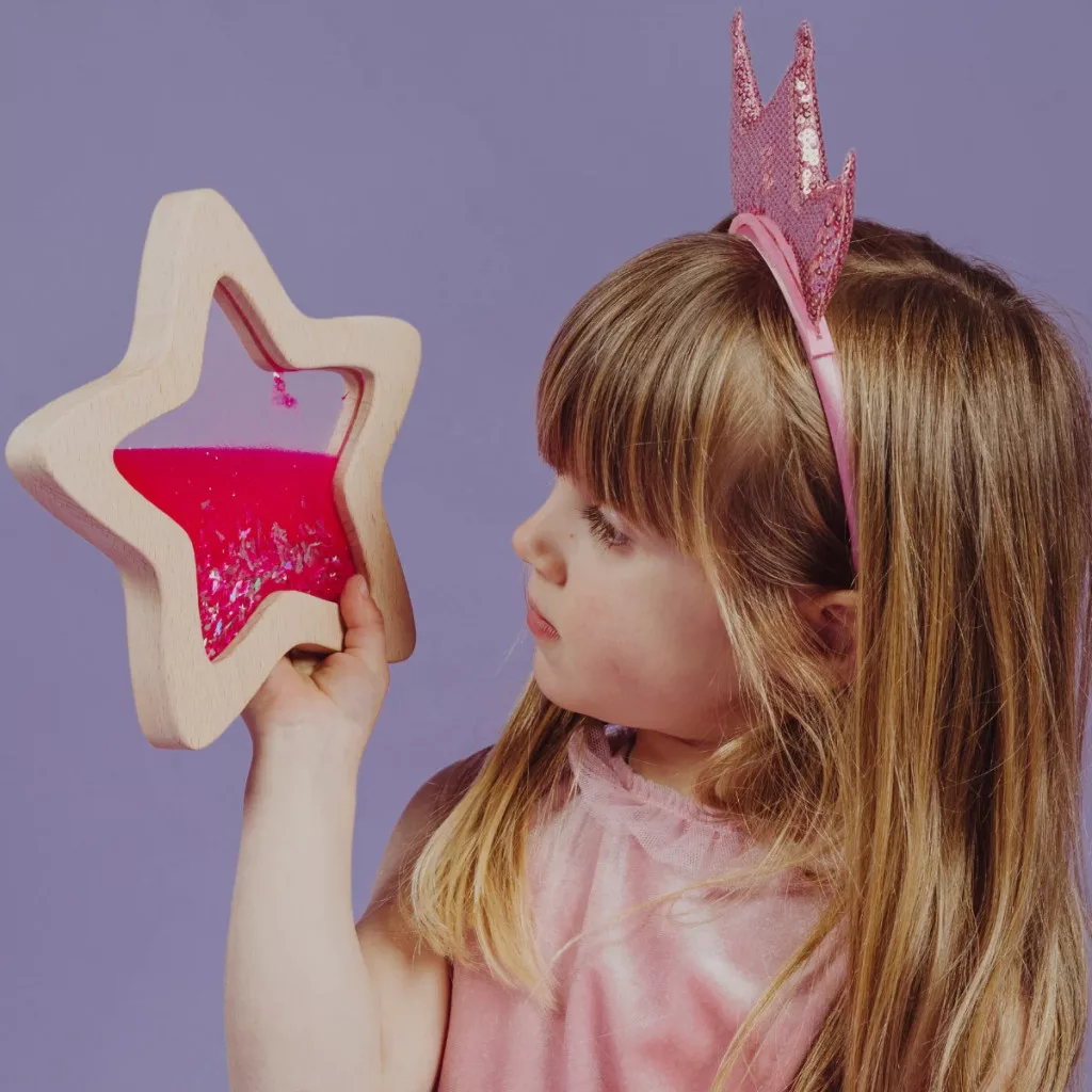 - Nyugtató szenzoros élmény – a lebegő csillámok és színek segítik a fókuszálást és a megnyugvást.