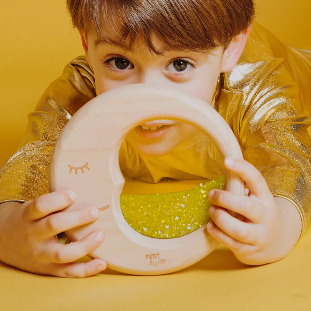 A Petit Boum lebegő hold egy különleges szenzoros játék, amely a csillagos égbolt nyugalmát és a hold varázslatos ragyogását hozza el a gyermekek számára. Természetes bükkfa kerete és aranyló csillámokkal és ezüstcsillagokkal töltött belső része egyedülálló látványt nyújt, miközben serkenti a figyelmet, a vizuális követést és a koncentrációt.