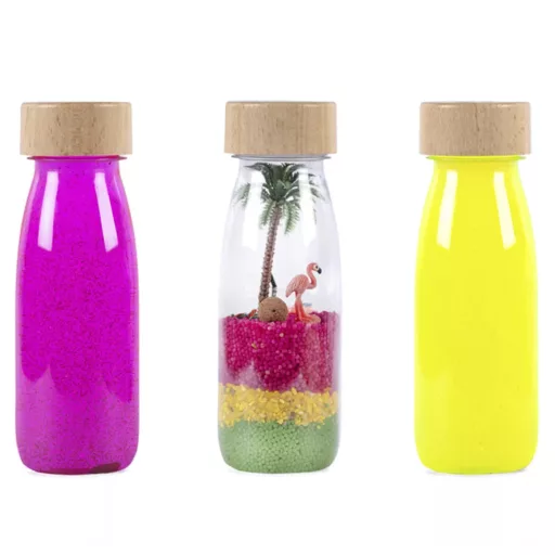 - Mozgás és motoros fejlődés – a palackok rázása, forgatása és döntögetése fejleszti a finommotoros készségeket.