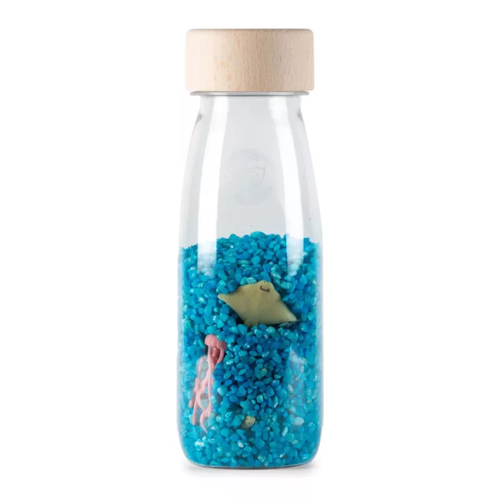 A palackban található apró részletek, a lebegő elemek és a rejtett tengeri állatok segítenek fejleszteni a gyermek vizuális figyelmét és koncentrációját.