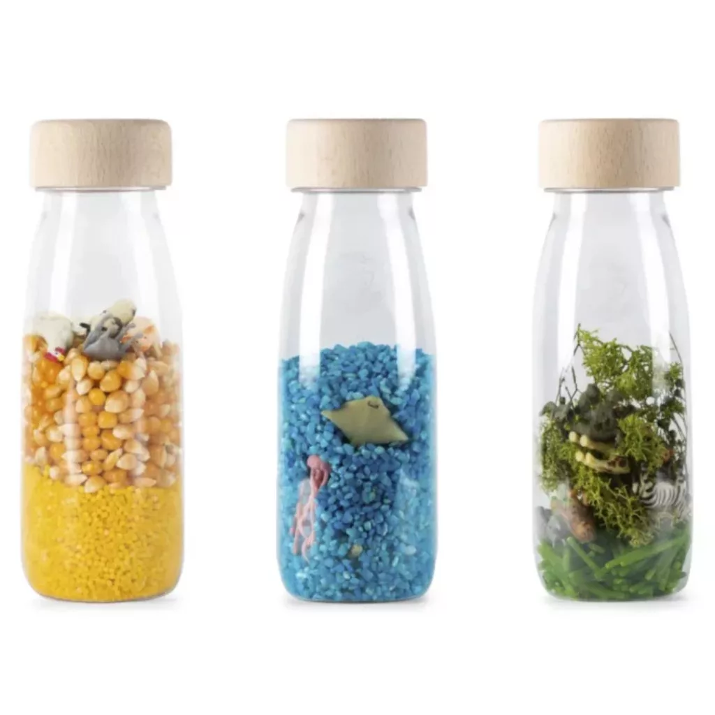 A Petit Boum Nature csomag három egyedi szenzoros palackot tartalmaz, amelyek a természet különböző élőhelyeit elevenítik meg. A gyerekek játék közben felfedezhetik az erdők, a dzsungelek és a tengerek izgalmas világát, miközben fejlődik érzékelésük, figyelmük és motoros készségeik.