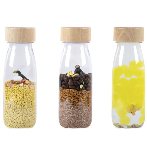 • Sound Bottle Monkey – Egy vidám kismajom és trópusi elemek mozgása kelti életre ezt a palackot, amely játékos módon fejleszti a gyermekek érzékelését.