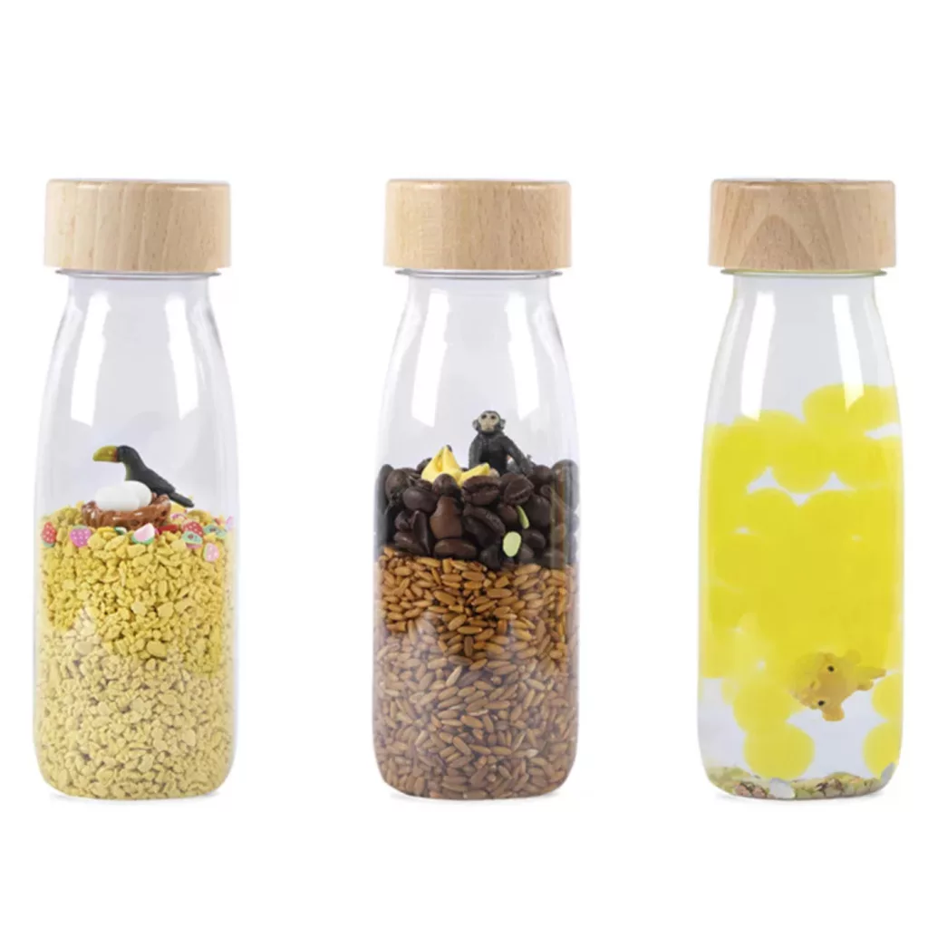 - Sound Bottle Monkey – Egy vidám kismajom és trópusi elemek mozgása kelti életre ezt a palackot, amely játékos módon fejleszti a gyermekek érzékelését.
