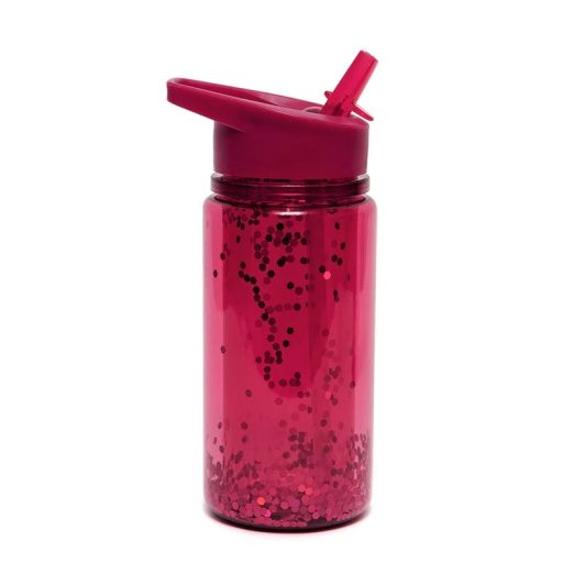 Petit monkey szívószálas kulacs glitter - Piros