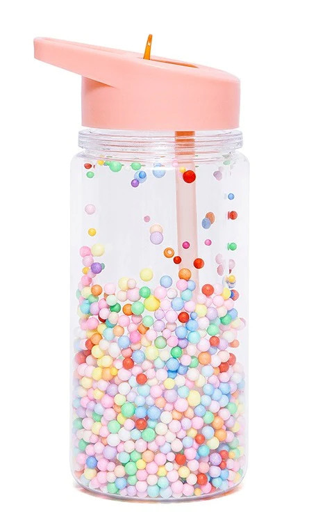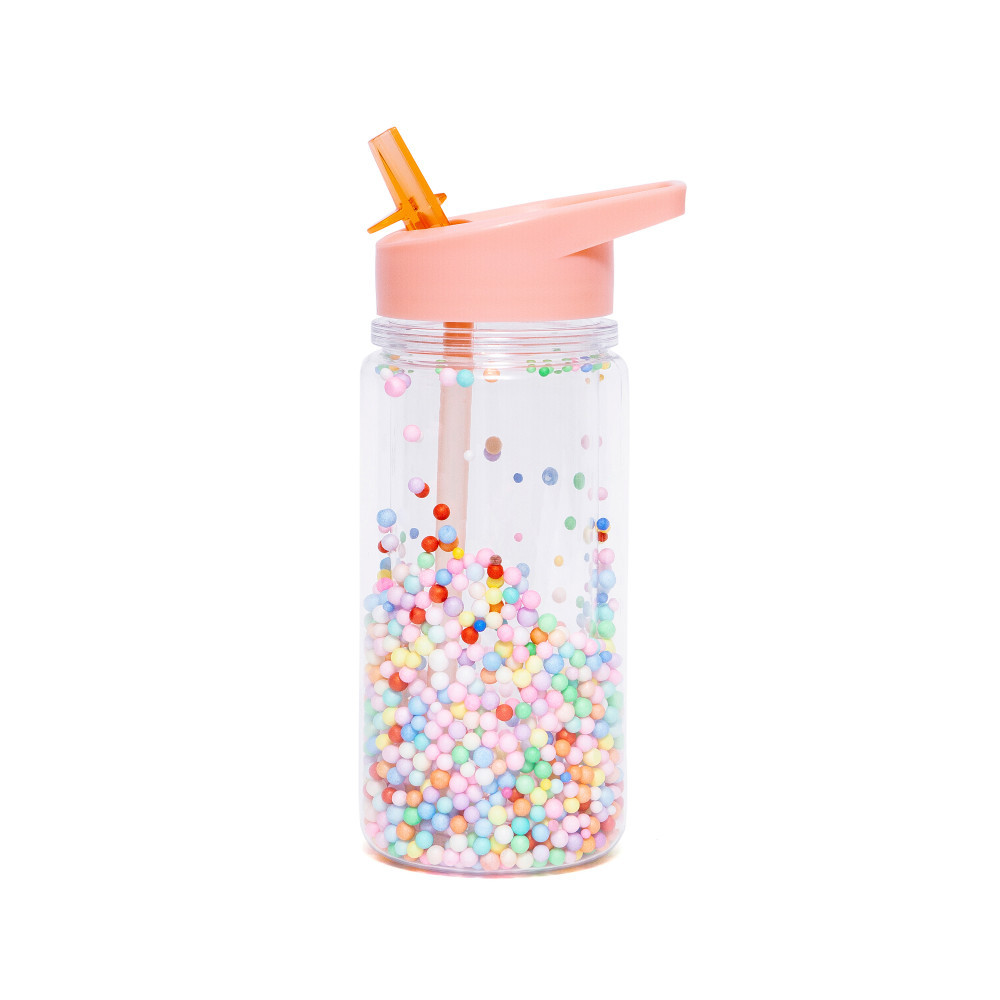 A dupla falú, átlátszó palackban macaron színű popsok találhatóak, amelyek mozognak, ha megrázzák a palackot. Ez a játékos és színes dizájn biztosan elnyeri a gyerekek tetszését.