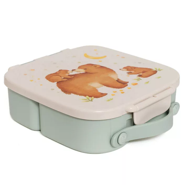 Gondoskodás és praktikum egy dobozba zárva – a Petit Monkey bájos macis uzsonnás doboza tökéletes társ óvodába, iskolába vagy családi kirándulásokra. A gondosan megtervezett bento típusú kialakítás három különálló rekeszt kínál, így az uzsonna változatos, mégis rendezetten csomagolható. A levehető elválasztóval bármikor egyszerűen egyetlen nagy rekesszé alakítható, ha nagyobb étel vagy szendvics kerül bele. Az aranyos, családi medvét ábrázoló grafika pedig minden kisgyermek szívét megdobogtatja.