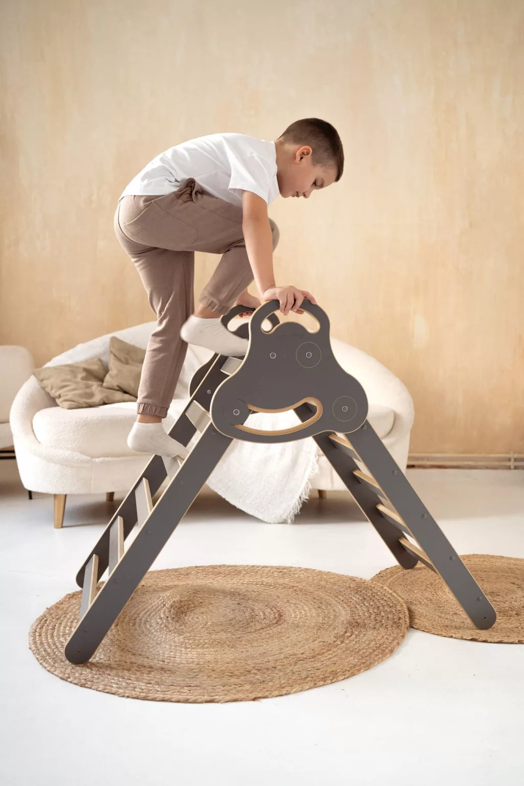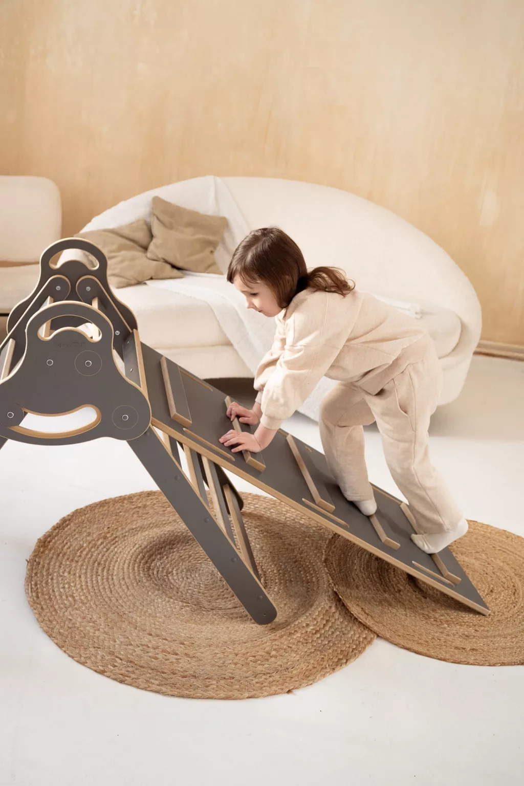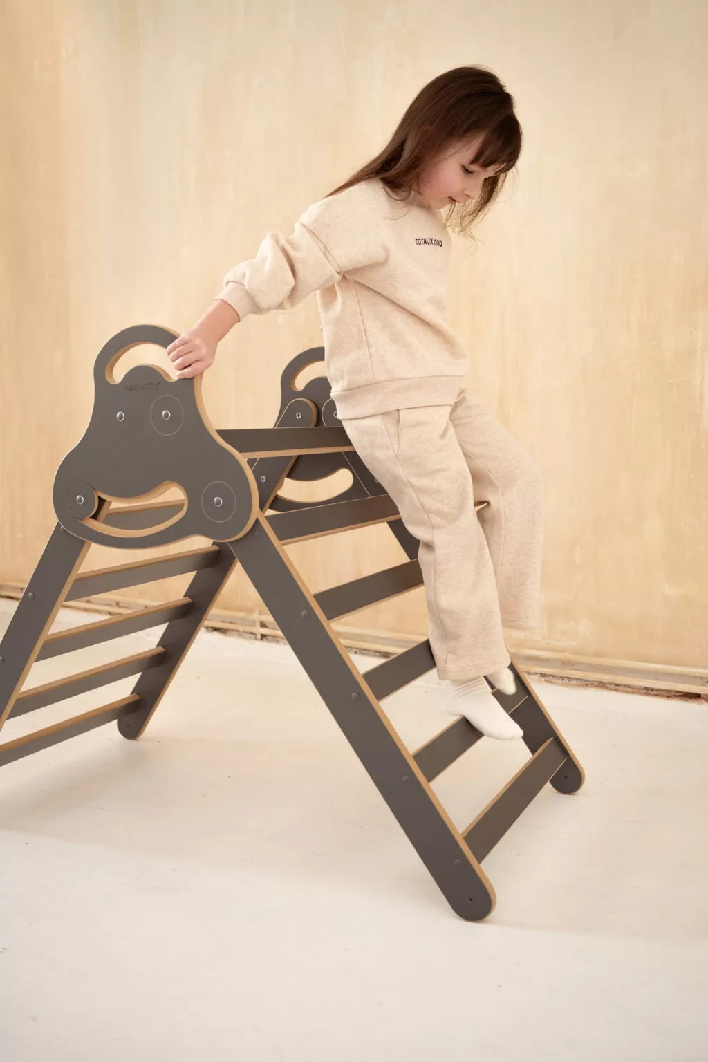 A Pikler-féle háromszög mászóka ösztönzi a gyermeket arra, hogy önállóan fedezze fel mozgásképességeit. A mászólétra kialakítása segíti a váltott végtagmozgások, a koordináció és az egyensúly fejlődését – miközben minden izmot aktivál, különösen a törzs- és karizmokat.