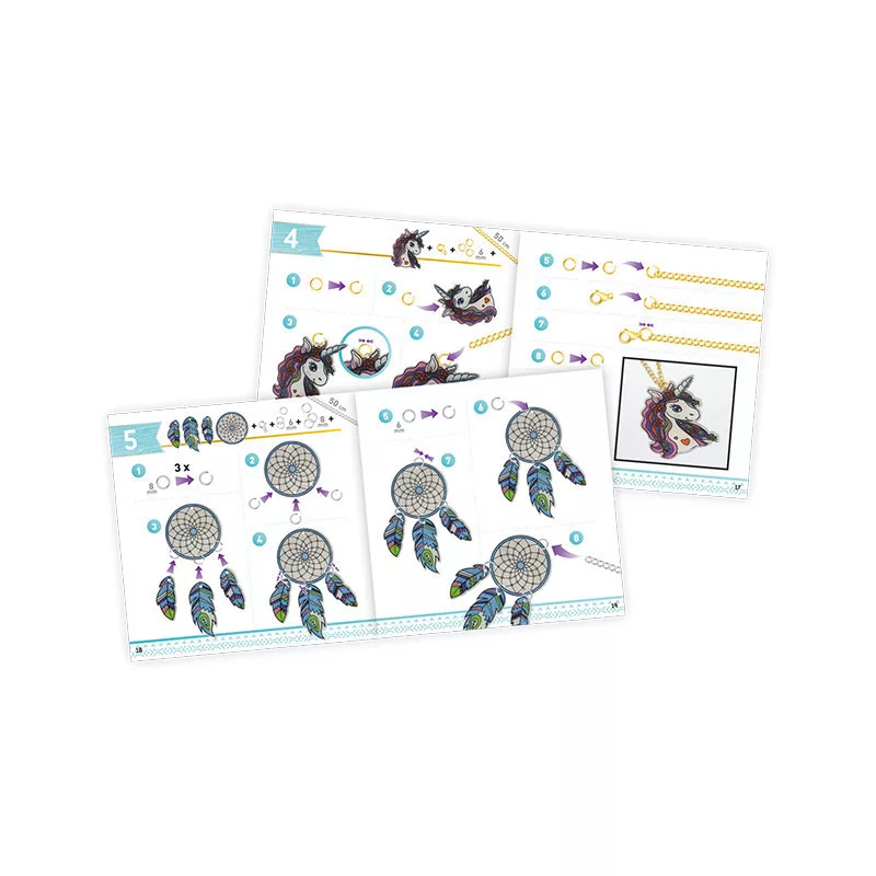 Színezd ki a készletben található színes ceruzákkal a hőre zsugorodó műanyag medálokat és készíts belőlük egyedi ékszereket!