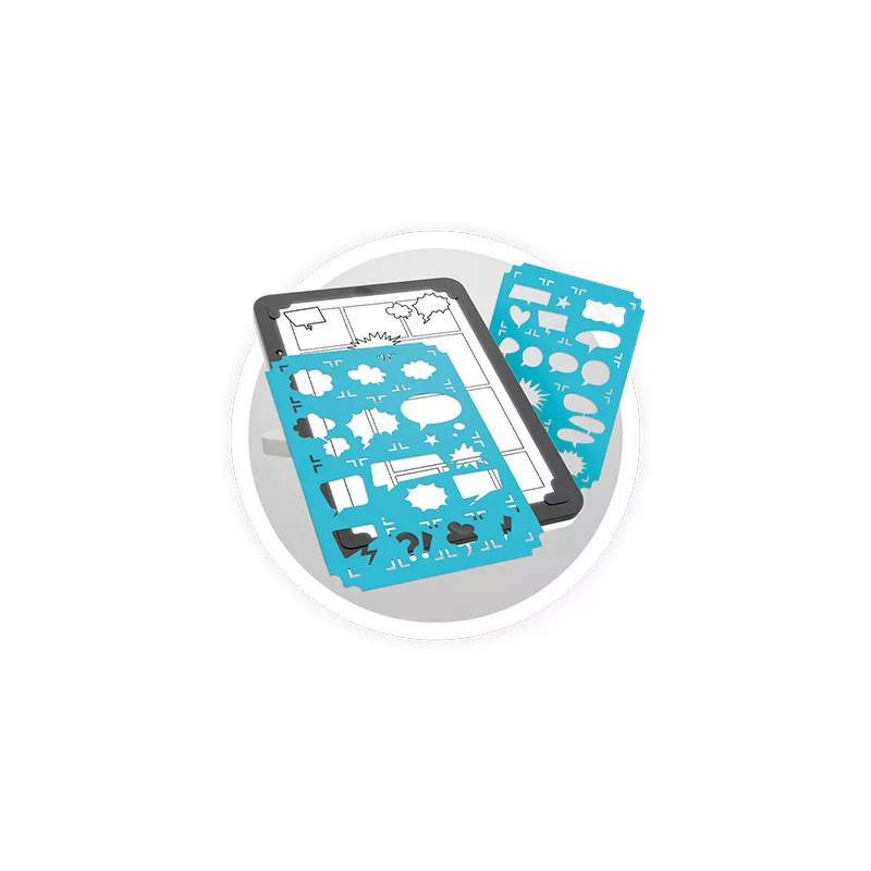 Helyezz egy papírlapot a rajztáblára, a sablonok segítségével pedig készíts egy képet. Adj hozzá matricákat és szöveget, így történeteket hozhatsz létre!