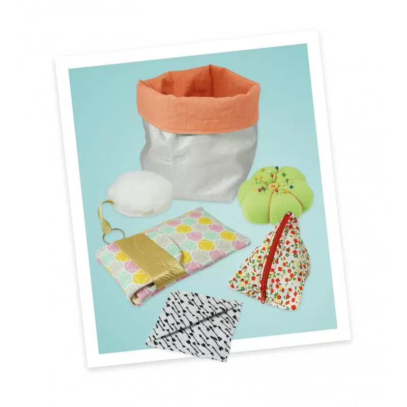 Egy varrógép, amely segít megtanulni a varrás alapjait, és amellyel 6 divatos tárgyat is elkészíthetsz: egy könyvjelzőt, egy kulcstartót, egy tárolókosarat, egy erszényt, egy pénztárcát és egy tűpárnát!