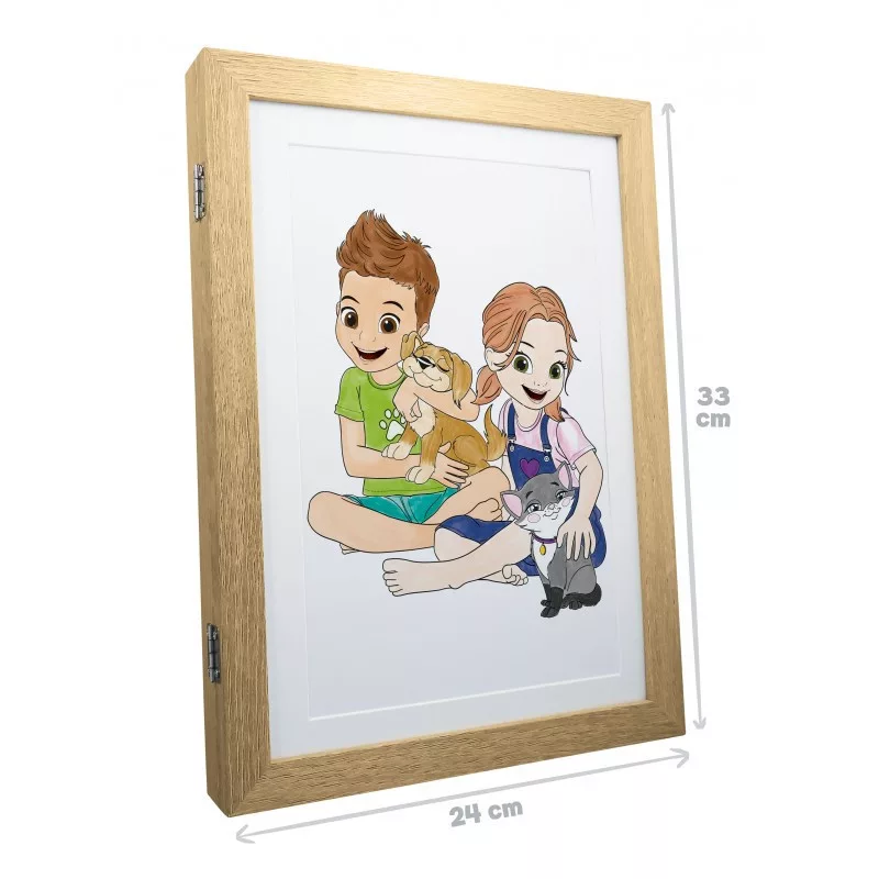 A keret mérete 24 cm x 33 cm, A4-es méretű rajzok illeszkednek bele.