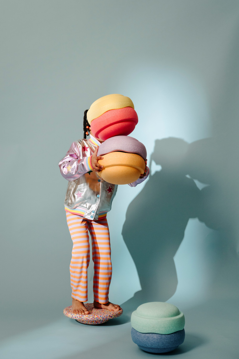 A Rainbow Set @nikejane a Stapelstein® világának sokszínűségét kínálja, ahol a kreatív játék és mozgás új dimenzióit fedezhetjük fel. Ez a különleges, limitált kiadású készlet Nike van Dintherrel, a @thisisjanewayne társalapítójával készült közös alkotás eredménye, amely a bőséges életöröm hódolása. A set dinamikus hockerként is használható, ami alkalmazkodik minden testmérethez és erősíti a törzsizomzatot, valamint számtalan egyensúlyozási lehetőséget biztosít.