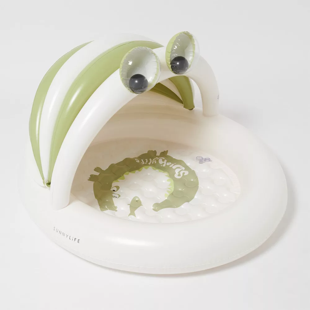 A Sunnylife felfújható baba pancsoló kupolával - Cookie the Croc Khaki tökéletes választás a nyári napokra, lehetővé téve a kicsik számára, hogy biztonságosan és kényelmesen élvezzék a vízben való játékot, miközben az árnyékoló megvédi őket a napfénytől. Töltsd a nyarat ezzel az aranyos és praktikus medencével, amely örömteli pillanatokat ígér a legkisebbeknek.