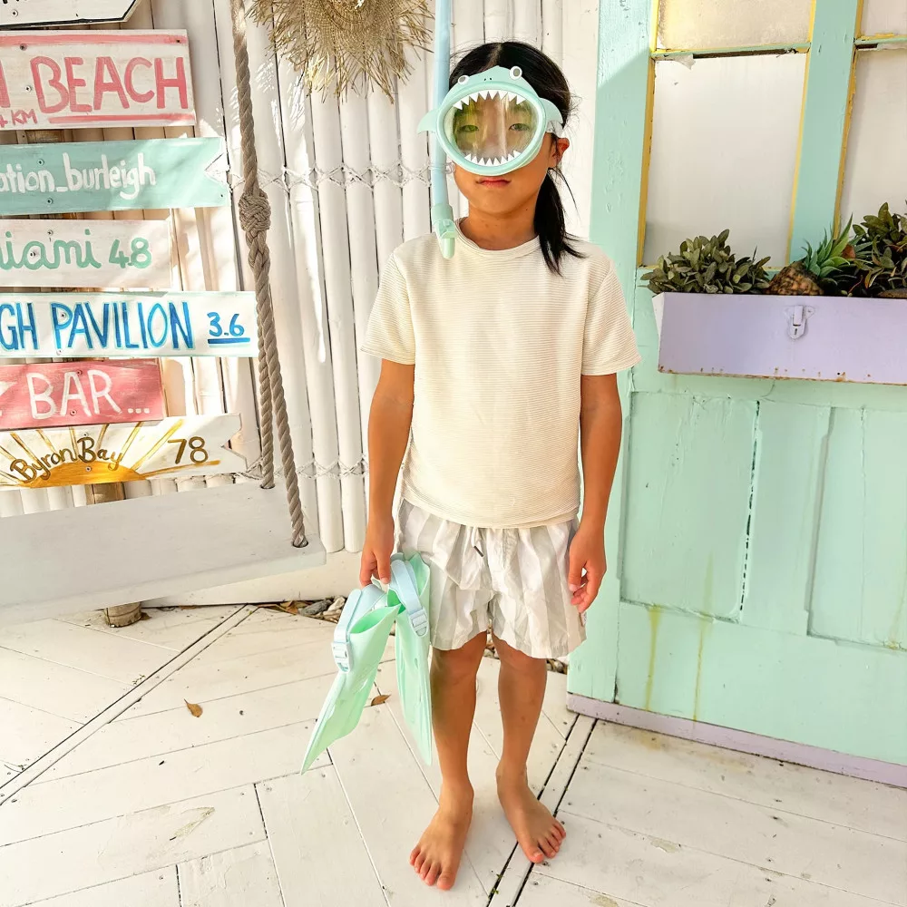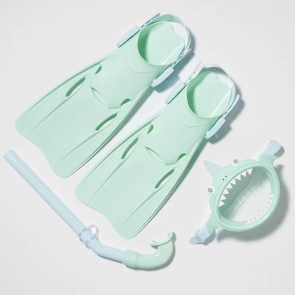 A Sunnylife gyerek búvárszett kicsi - Salty the Shark tökéletes választás azoknak a gyerekeknek, akik készen állnak felfedezni a víz alatti világot és növelni víz önbizalmukat. Vigyétek haza ezt a búvárszettet, és tapasztaljátok meg együtt a nyár legizgalmasabb kalandjait!