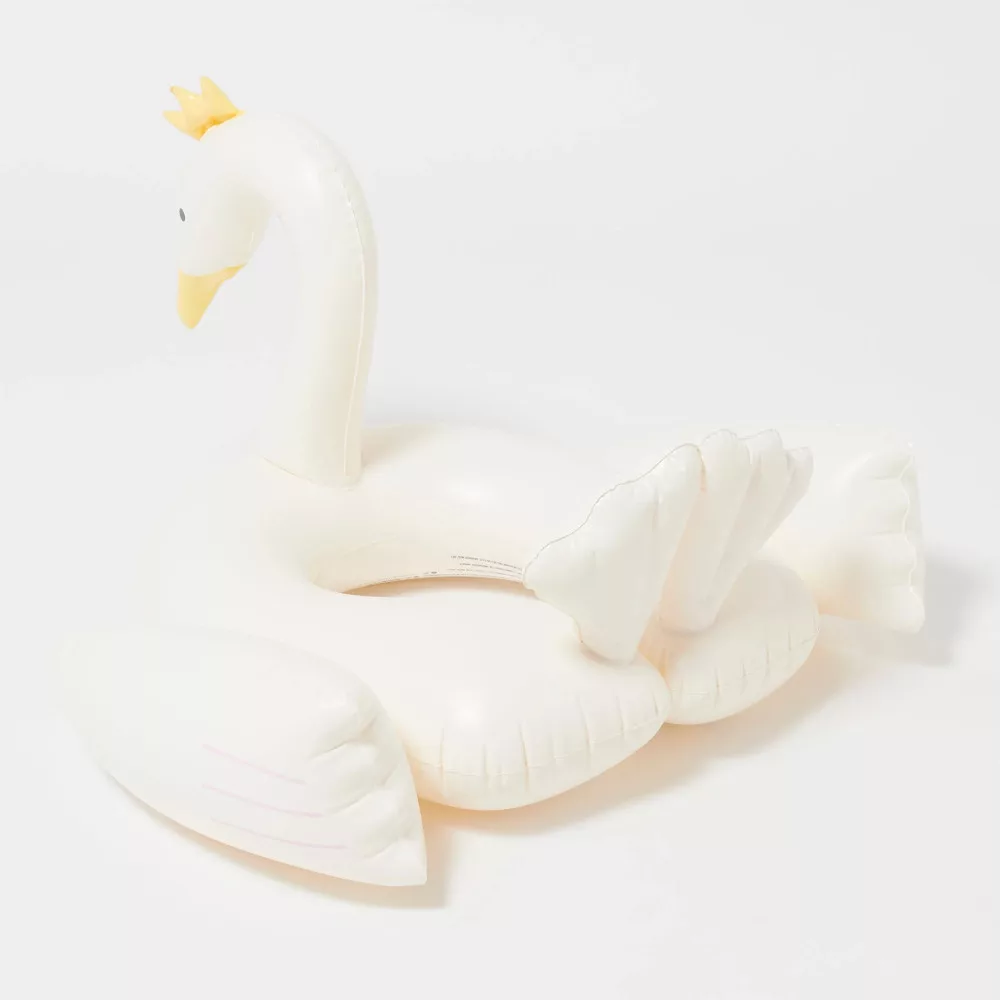 Hódítsd meg a medencét a stílusos és elegáns Sunnylife Princess Swan gyerek úszógumival! Ez a különleges úszógumi egy gyönyörű hattyút formáz, hátul nyitott kialakításával biztosítva a könnyű fel- és levételt. A fehér és pasztellszínek finom kombinációja eleganciát és varázslatot kölcsönöz minden vízi játéknak, miközben kényelmes támaszt nyújt a gyerekeknek, segítve őket az úszás első lépéseiben.
