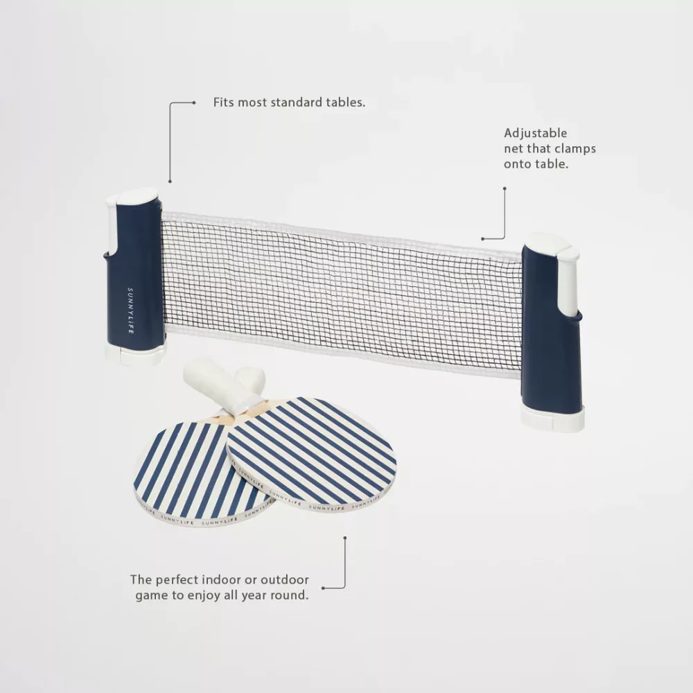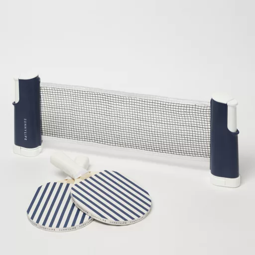 A Sunnylife Ping Pong Szett Hálóval - Coastal Blue tökéletes módja annak, hogy aktívan töltsd a szabadidődet, miközben élvezed a stílusos és klasszikus játékot. Legyen szó pihentető délutánról a teraszon, vagy egy aktív napról a strandon, ez a ping pong szett biztosan emelni fogja a hangulatot. Találd meg az ellenfeledet, és készülj fel egy stílusos játékra, ahol a verseny csak most kezdődik!
