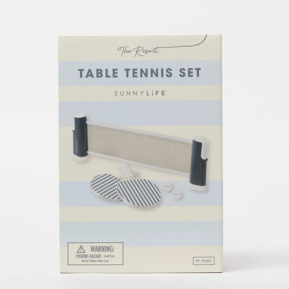 Fedezd újra az asztalitenisz örömeit a Sunnylife Play On Table Tennis készlettel, amely a legnépszerűbb játékok közé tartozik, visszavezetve minket a játék alapjaihoz. A készlet két falapátot tartalmaz, melyeket vintage csíkok díszítenek és egy tengeri színvilág jellemzi, a Coastal Blue árnyalatokkal. A Resort Play On Table Tennis készlet egy időtlen klasszikus, tökéletes minden alkalomra.